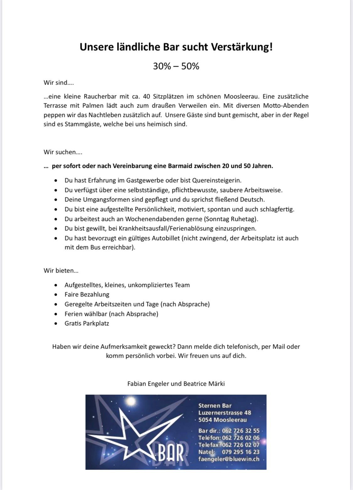 Sucht ihr ein gemütliches und geeignetes Plätzchen für Ihr Event? Herzlich willkommen bei der Sternenbar. Auch für Geschäftsanlässe, Familienanlässe und Vereinsanlässe bis 40 Personen.